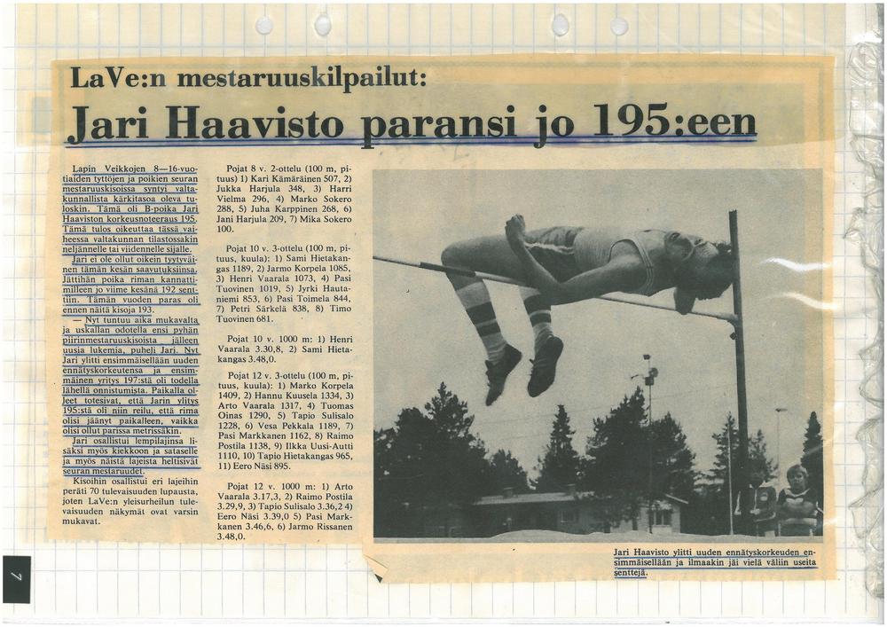 - Urheilu-ura nuoruudessa, korkeushyppy 207 cm, Lapin kautta aikain toiseksi paras tulos